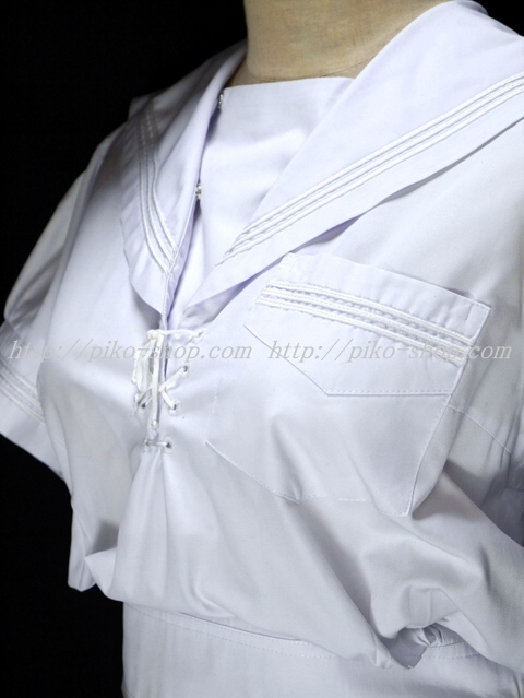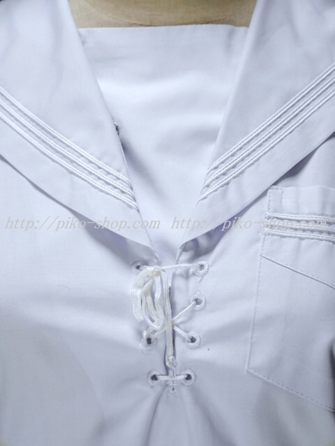 | 詳細/特徴 夏服3点セット (上着・スカート・専用紐タイ) ☆人気制服☆ 上着は胸当て付きで胸元部分が紐タイで特徴的なセーラー服♪ 両脇下ホックタイプ☆ ウエスト絞りタイプの可愛いセーラー服☆ スカートは濃紺で28本箱ヒダプリーツスカート☆ 左ファスナー・右ポケット☆ ウエスト調整はアジャスタータイプ☆ アンダーベストを着ない仕様変更でスカートのプリーツ数が24本から28本に仕様変更されました。 |
