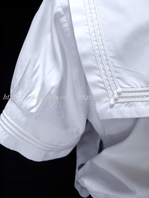 | 品質と状態 3年間の使用済み制服なので自然な使用感の傷みは若干あります♪丁寧に大切に着ていた様子で特に目立った傷みもシミ汚れも無い綺麗な状態ですが厳しく言っちゃうと上着の紐タイ穴の横に点シミが1箇所と後ろの右裾に薄いシミ汚れ、右袖口の白線にちょっぴり傷みがあるかなぁ。 |