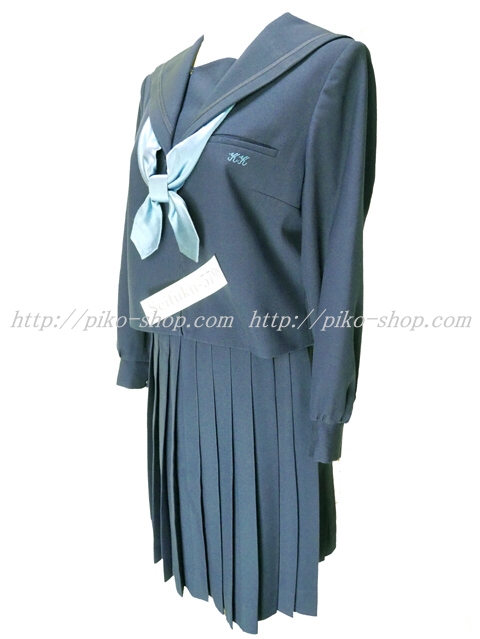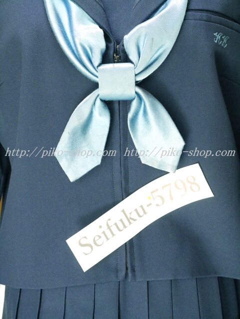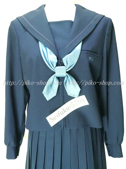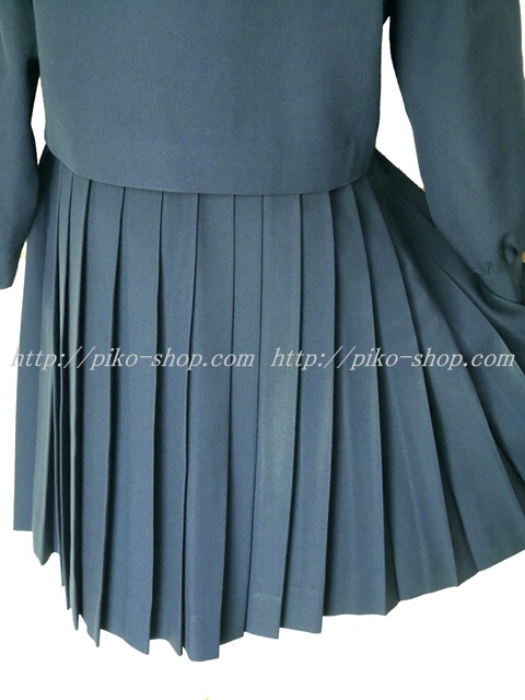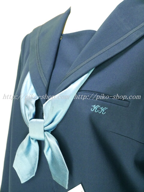 | 詳細/特徴 冬服3点セット (上着・スカート・専用シルク風リボン) ☆現行制服☆ 生地の色は青紺って感じの色です♪ 胸ポケットに校章の刺繍入り・セーラー襟のラインは紺色の1本ラインです。 28本車ヒダプリーツ・左ファスナー・左ポケット☆ ウエスト調整はアジャスタータイプです♪ |