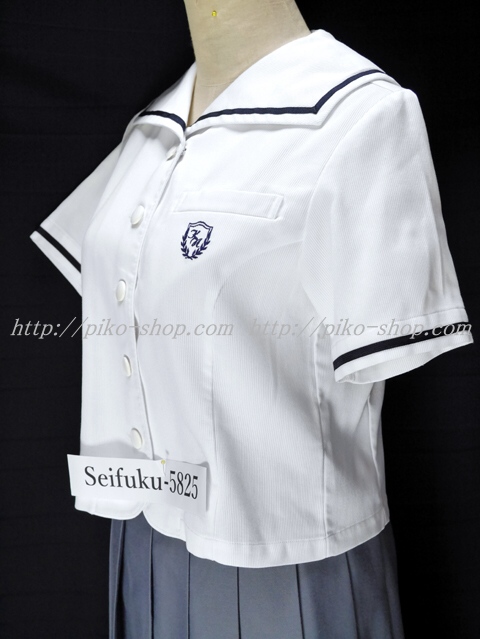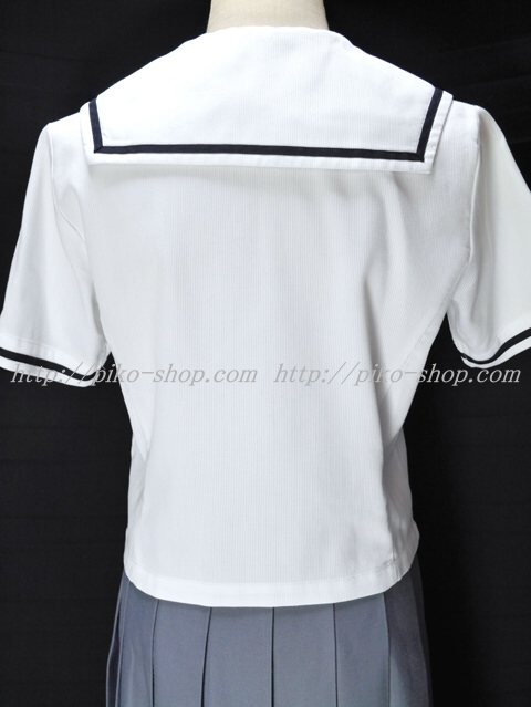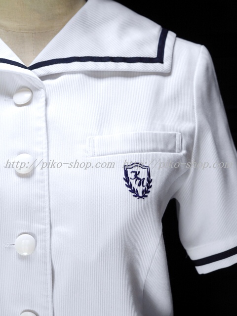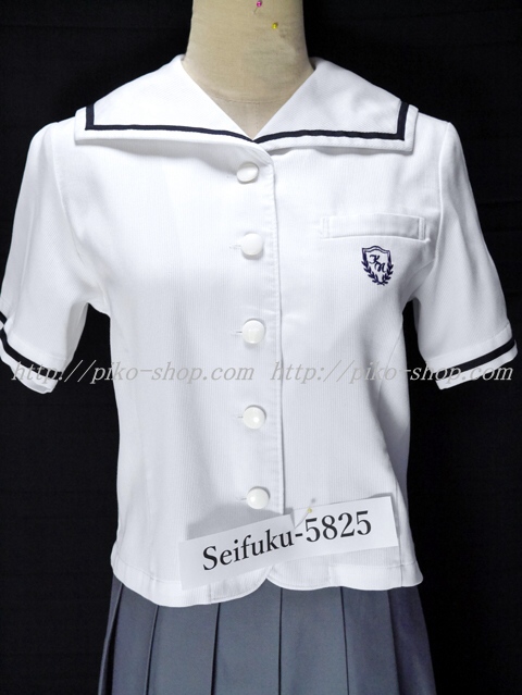 | 詳細/特徴 夏服セット (上着・スカート) ☆現行制服☆ ブラウスはセーラー襟に紺の1本ライン入・胸ポケットに校章刺繍☆ スカートは薄いパープルグレーで16本車ヒダプリーツスカート☆ 裾のカラーラインが特徴の可愛いスカートです♪ ウエスト調整はアジャスタータイプ・左ファスナー・左ポケット☆ |