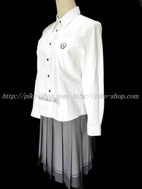 | 詳細/特徴 冬服2点セット (長袖ブラウス・冬スカート) ☆現行制服☆ ブラウスは紺色ボタンが特徴的・胸ポケットに校章刺繍☆ スカートは薄いパープルグレーで16本車ヒダプリーツスカート☆ 裾のカラーラインが特徴の可愛いスカートです♪ ウエスト調整はアジャスタータイプ・左ファスナー・左ポケット☆ |