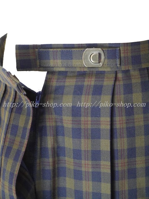 紺色とカーキー色とえんじ色のチェック柄・20本車ヒダプリーツスカート☆