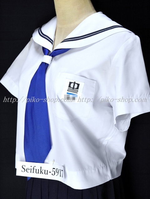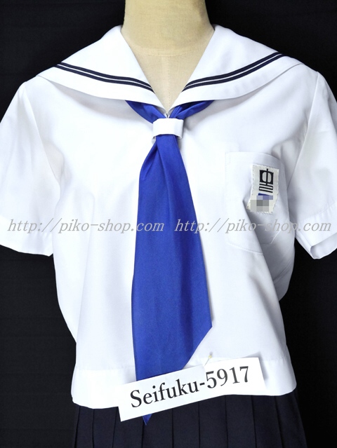 セーラー襟に紺色2本ライン・胸ポケットに布名札付き♪