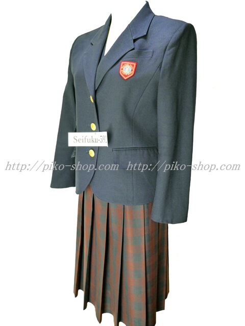 | 詳細/特徴 冬服3点セット (上着・ベスト・スカート) ☆可愛い制服☆ 森英恵デザインのブランド制服♪ ブレザーもベストも濃紺で左胸ポケットに赤い校章エンブレム☆ 蝶々モチーフのゴールドボタンが特徴的♪ スカートは16本車ヒダプリーツスカートで濃紺とエンジのチェック柄♪ 左ファスナー&ポケット・ウエスト調整はアジャスタータイプ |