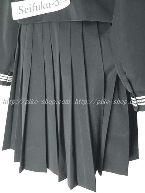 | 詳細/特徴 冬服3点セット (上着・スカート・指定スカーフ) ☆黒いセーラー☆ 【スカーフは新品で白色の三角タイプで素材はナイロンのハネクトーンです】 珍しい黒色の若干光沢感のあるセーラー服セット♪ 上着は黒でセーラー襟と胸ポケットと両袖口に白線3本入り♪ 左脇下ファスナー☆ スカートも黒で28本車ヒダ仕様のプリーツスカート☆ 左ファスナー&ポケット☆ ウエスト調整はアジャスタータイプ☆ |