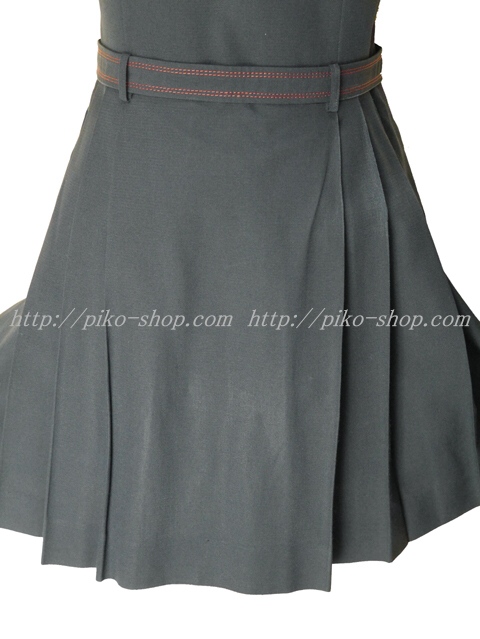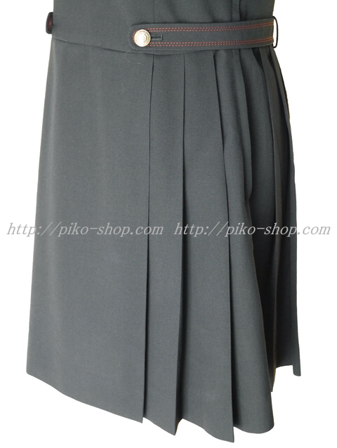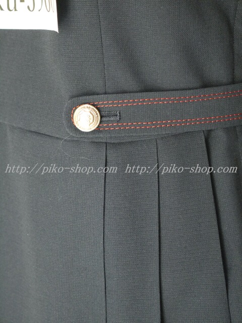 | 詳細/特徴 夏服ジャンパースカート ☆中等部制服☆ えんじいろのステッチが施された濃紺のジャンパースカート♪ スカート部分は前後幅広タイプの12本箱ヒダプリーツ☆ 左脇下ファスナー&右ポケット☆ 取外し可能なベルト付きで校章入りのシルバーボタン☆ 上半身スカート部分ともにポリエステルのネット状の裏地付き♪ |