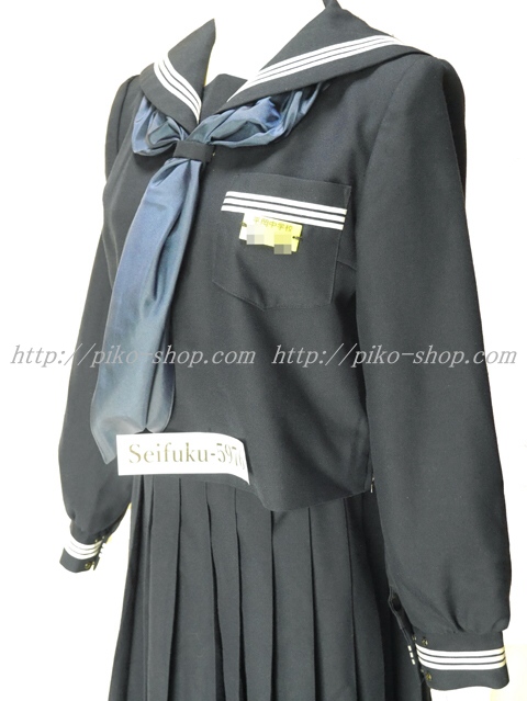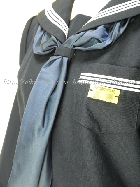 | 詳細/特徴 冬服4点セット (上着・スカート・指定スカーフ・プラスチック名札) ☆校名入りプラスチック名札☆ 【スカーフはお古の三角スカーフで素材はナイロンのアミックです】 人気の濃紺タイプのセーラー服セット♪ セーラー襟に白線3本入り・胸ポケットに白線3本☆ スカーフ留め付き・取り外しが可能な胸当て付き♪ 左脇下ファスナー・内側にネーム刺繍入り☆ スカートは24本車ヒダ仕様のプリーツスカート♪ 左ポケット&ファスナー☆ ウエスト調整はアジャスタータイプ☆ ♪希少な校名入プラスチック名札付き♪ |