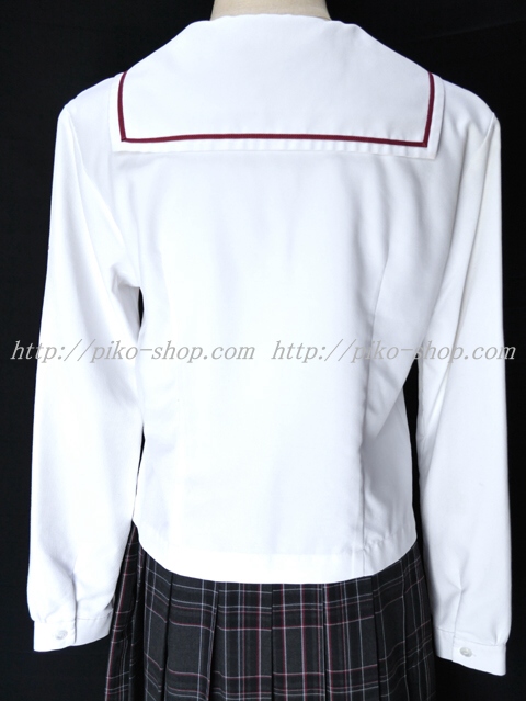 ブラウスはセーラー襟でえんじ色ラインが可愛い長袖のオーバーブラウス♪