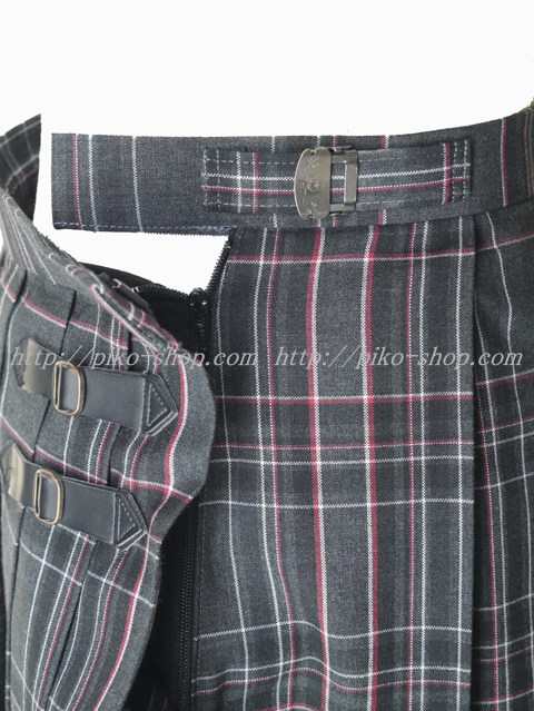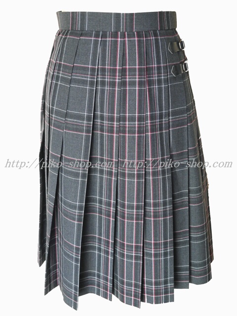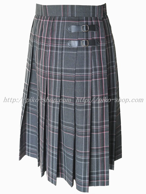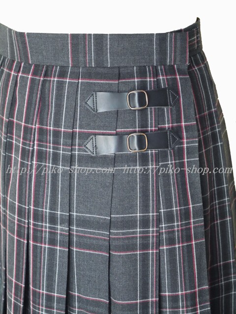 スカートはチャコルグレーにえんじ色と白のライン入りのチェック柄♪