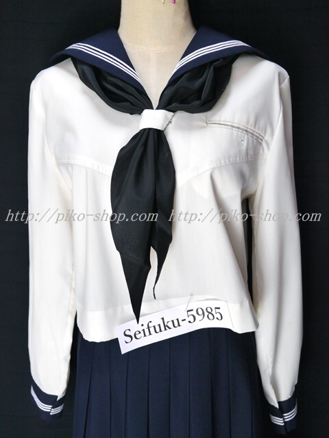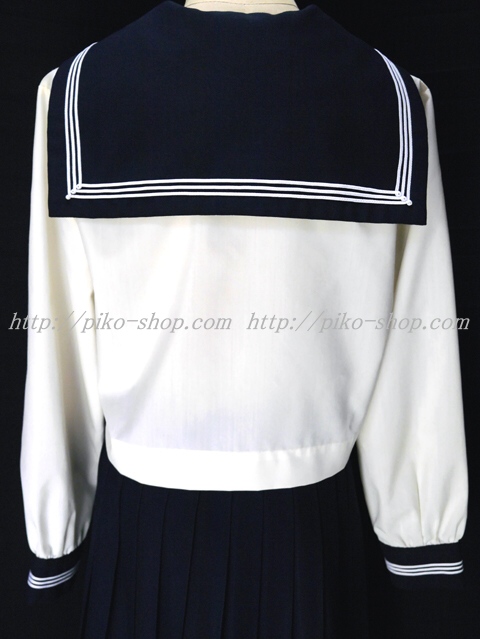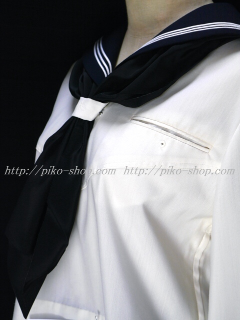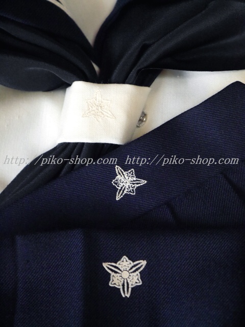 | 詳細/特徴 合服3点セット 上着・スカート・指定スカーフ ☆大きめサイズ☆ 【スカーフは新品で黒色の三角タイプで素材はポリエステル100%のデシンです】 上着はクリーム色のセーラー服で濃紺のセーラー襟に白線3本入り☆ スカーフ留めに校章刺繍入り・左脇下ファスナー♪ (セーラー襟はボタン留めでお洗濯時に取り外しができます) スカートは濃紺で28本車ヒダ仕様のプリーツスカート☆ ウエストベルト前左部分と裾に校章入り・左ファスナー&ポケット☆ ウエスト調整はアジャスタータイプ☆ |