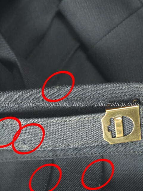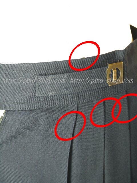 | 品質と状態 3年間の使用済み制服なので自然な使用感の傷みは若干あります♪丁寧に大切に着ていた様子で特に目立った傷みも染み汚れも無い綺麗な状態ですが使用感でお写真のような感じでスカートのウエスト部分とプリーツの擦れ傷み、またアジャスター部分に使用感の擦れ傷みとウエストベルトの端角を手縫い修復している状態の品質になります☆彡 |