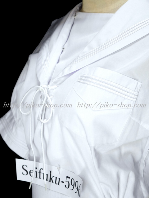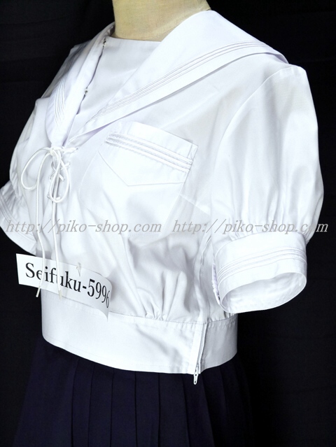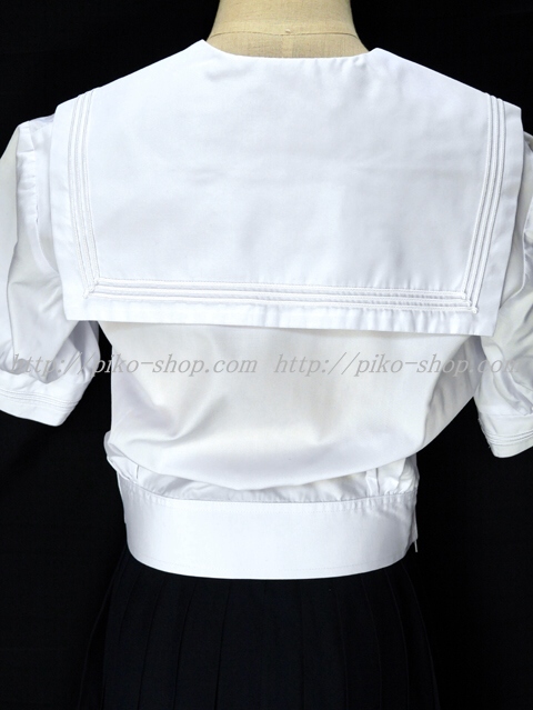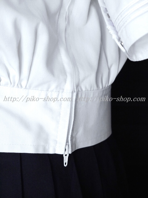 | 詳細/特徴 夏服3点セット (上着・スカート・専用紐タイ) ☆超ミニ丈スカート☆ セーラー襟に白線3本・両脇下ファスナータイプ 胸当て部分が紐タイで特徴的♪ ウエスト絞りタイプの可愛いセーラー服☆ スカートは濃紺で28本箱ヒダプリーツスカート☆ 左ファスナー・右ポケット☆ ウエスト調整はアジャスタータイプ☆ アンダーシャツ廃止で腰スカートタイプに改良されました☆ |