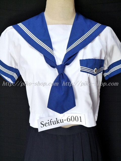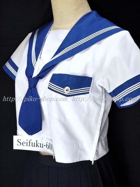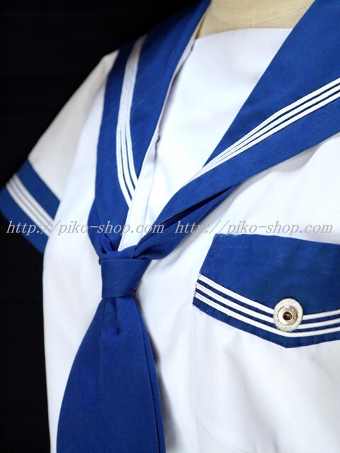 | 詳細/特徴 夏服3点セット (上着・スカート・専用リボンネクタイ) ☆ブルーのセーラー襟☆ 青紺カラーの夏セーラー服上下セット♪ セーラー襟と両袖口と胸ポケットが青紺で白線3本入り☆ 両脇下ファスナータイプ・可愛い胸当て付き♪ スカートは濃紺で24本箱ヒダプリーツスカート☆ 左ファスナー&ポケット☆ ウエスト調整は3段ホックタイプ☆ |