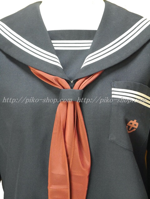 胸当てにも白線入り・胸ポケットに校章プリント・スカーフ留め付き♪
