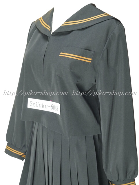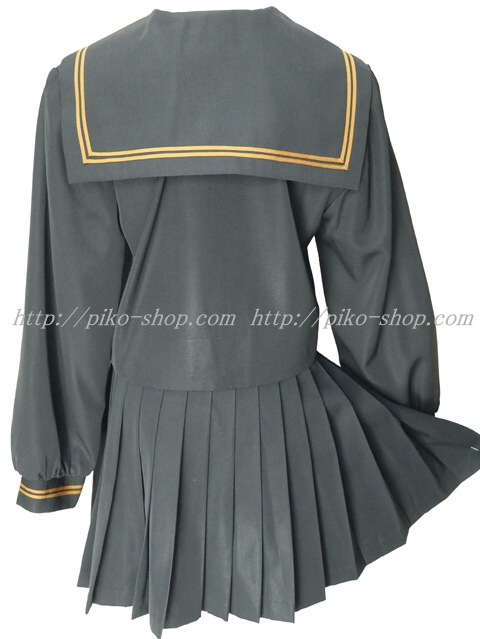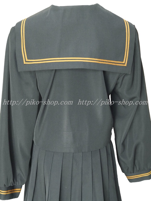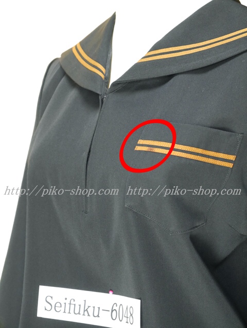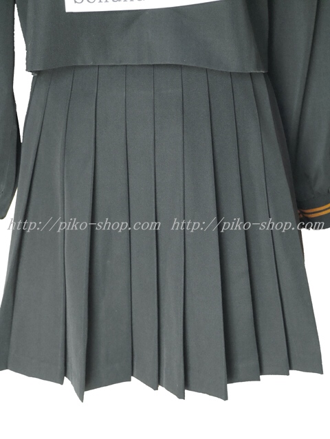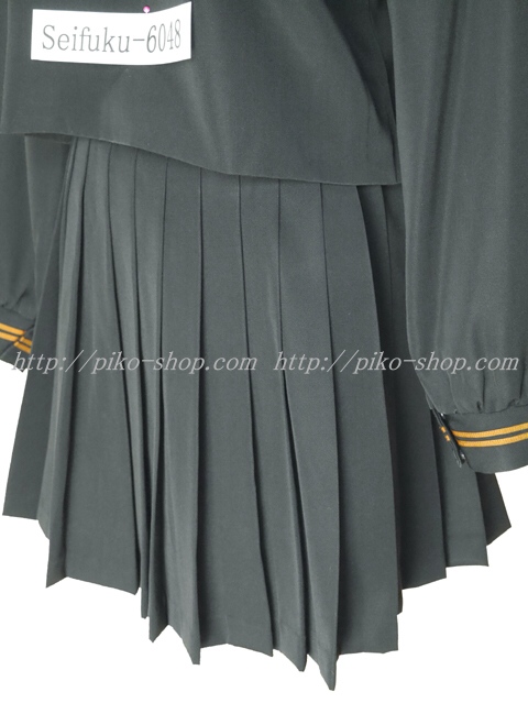 | 詳細/特徴 冬服2点セット (上着・スカート) ☆ミニ丈スカート☆ 【スカーフは別途\1000-で新品のハネクトーンの三角スカーフをお付けできます】 珍しい黒色の少し光沢感のあるセーラー服♪ 上着はセーラー襟と胸ポケット両袖口に茶色の2本ライン☆ 左脇下ファスナー☆ スカートは28本車ヒダ仕様のプリーツスカート♪ 左ファスナー&ポケット☆ ウエスト調整はアジャスタータイプ♪ |