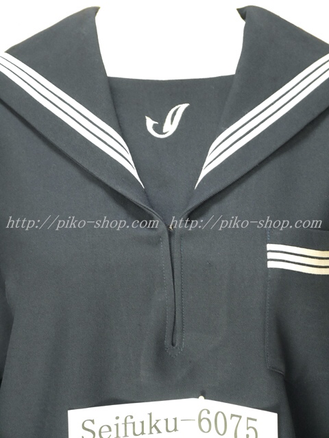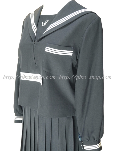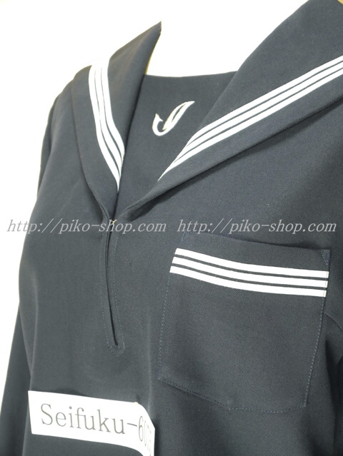 セーラー襟と胸当てと胸ポケットと両袖口に白線3本入り☆