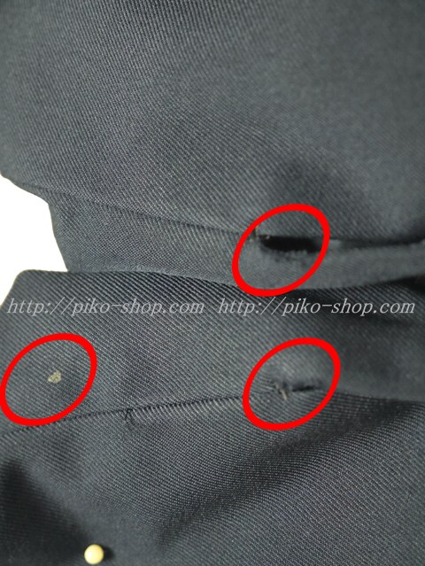 | 品質と状態 3年間の使用済み制服なので自然な使用感の傷みは若干あります♪丁寧に大切に着ていた様子で目立つ傷みもシミ汚れも無くて綺麗な状態なのですが両袖口の角と上部分に使用感の擦れ傷みと右袖口上に小さなシミ汚れ、スカートの前右プリーツに薄いシミ汚れがある状態の品質です。 |