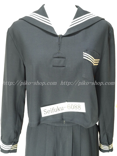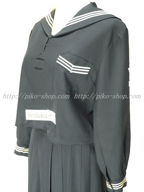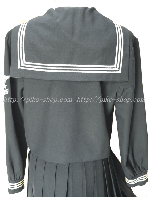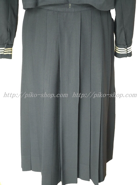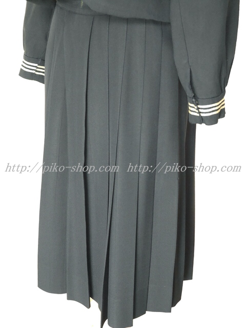 | 詳細/特徴 冬服2点セット (上着・スカート) ☆希少品☆ 濃紺のセーラー服で左袖の校章刺繍が特徴的☆ スカートは濃紺の24本箱ヒダプリーツスカート♪ ウエストベルトにアンダーシャツ用のボタン穴があります☆ ウエスト調整は1段ホック・左ファスナー☆ |