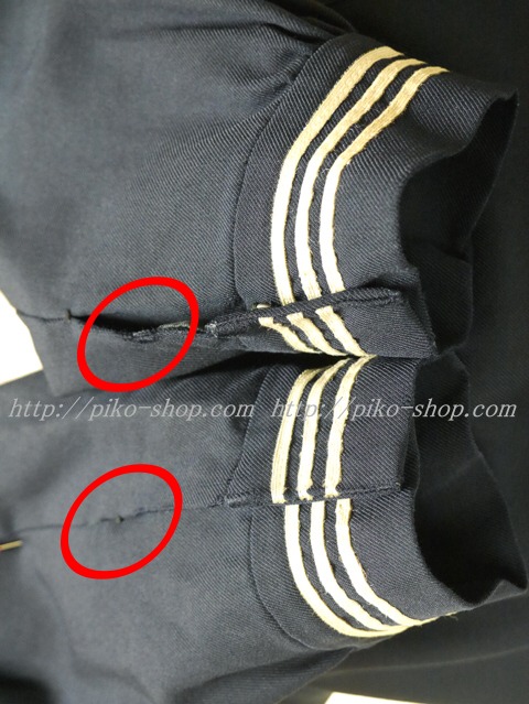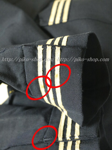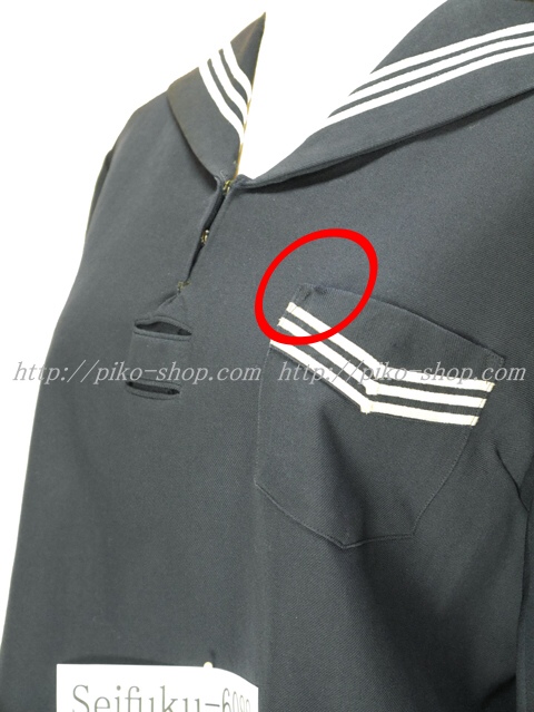 | 品質と状態 使用済み制服なので自然な使用感傷みは若干あります。大切に丁寧に着ていた様子ですが中高6年間使用の為なのかセーラー襟の白線と左袖口に黄ばみ汚れ、両袖口の上部分に擦れ傷み、胸ポケットに擦れ傷み、スカートにお写真のような2ミリ丸程度の虫食い傷みがある状態の品質になります。 |