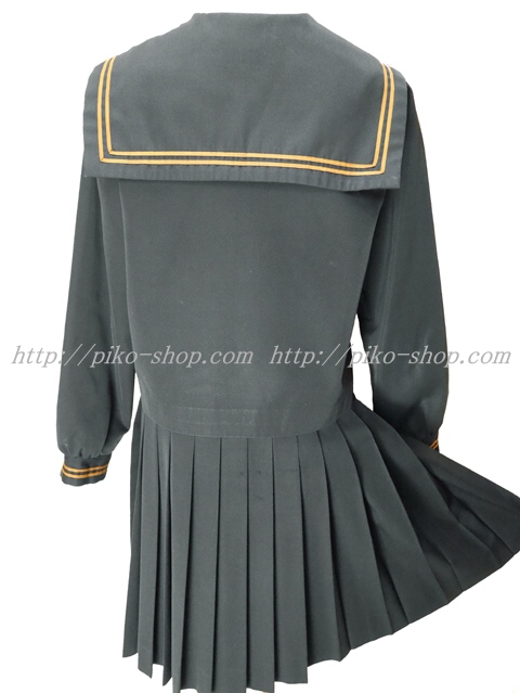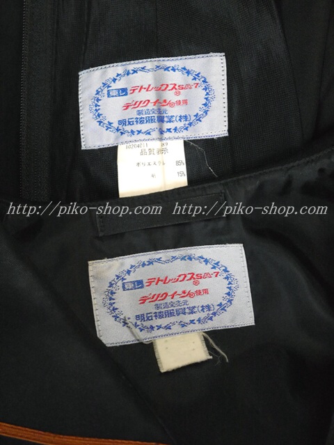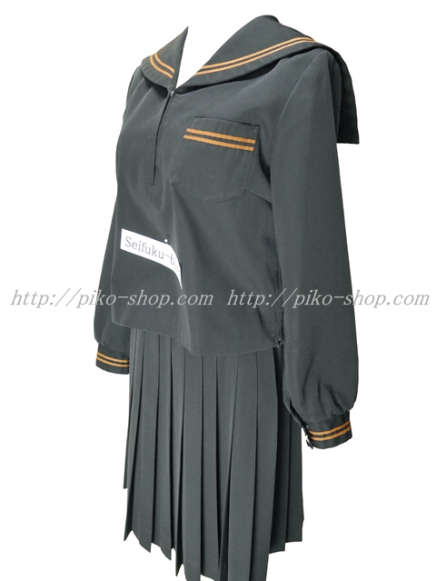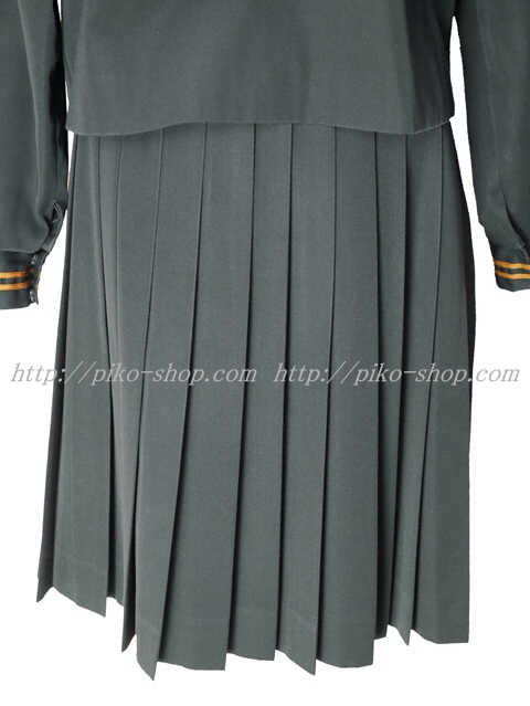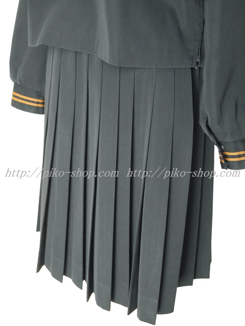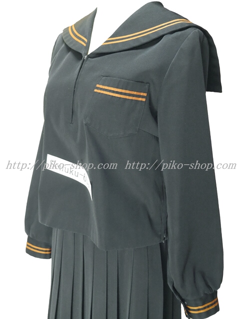 | 詳細/特徴 冬服2点セット (上着・スカート) ☆28本プリーツ☆ 【スカーフは別途\1000-で新品のハネクトーンの三角スカーフをお付けできます】 珍しい黒色の少し光沢感のあるセーラー服♪ 上着はセーラー襟と胸ポケット両袖口に茶色の2本ライン☆ 左脇下ファスナー☆ スカートは28本車ヒダ仕様のプリーツスカート♪ 左ファスナー&ポケット☆ ウエスト調整はアジャスタータイプ♪ |