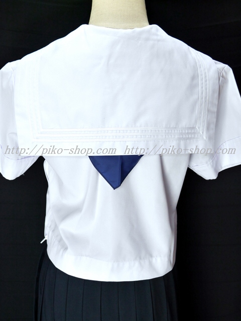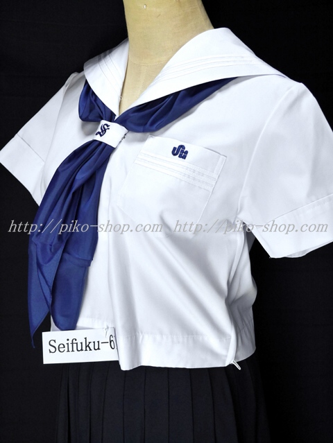| 詳細/特徴 夏服3点セット (上着・スカート・指定スカーフ) ☆夏服セーラー☆ 【スカーフは新品の三角スカーフで素材はナイロン100%のハネクトーンです】 夏服セーラーセット♪ 白線3本ラインの半袖セーラー服・左脇下ファスナー☆ スカーフ留めと胸ポケットに校章刺繍入り♪ スカートは濃紺で28本車ヒダ仕様のプリーツスカート♪ 左ファスナー&ポケット☆ ウエスト調整はアジャスタータイプ☆ スカートのウエストベルト部分に校章マーク入り♪ |