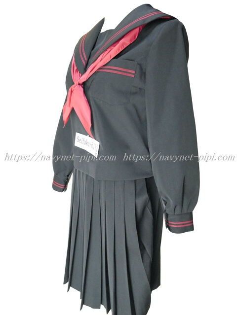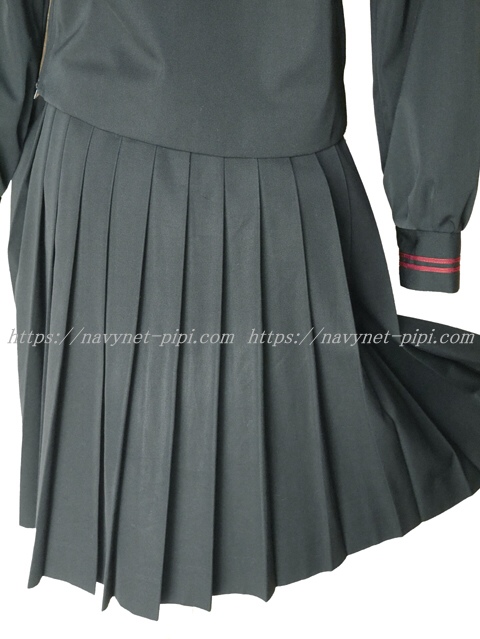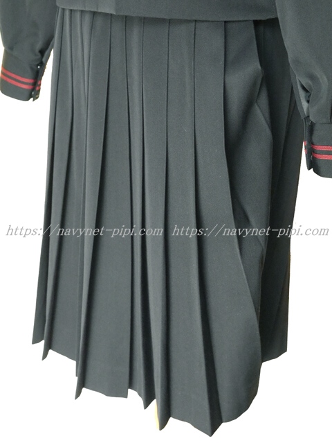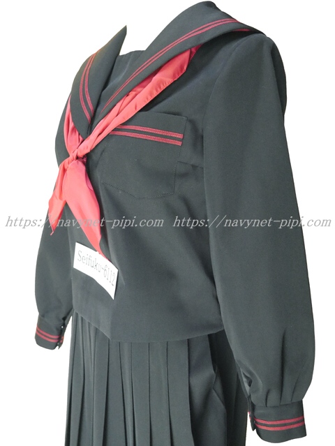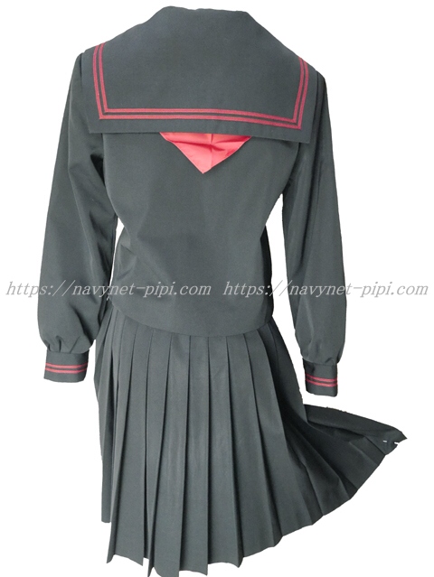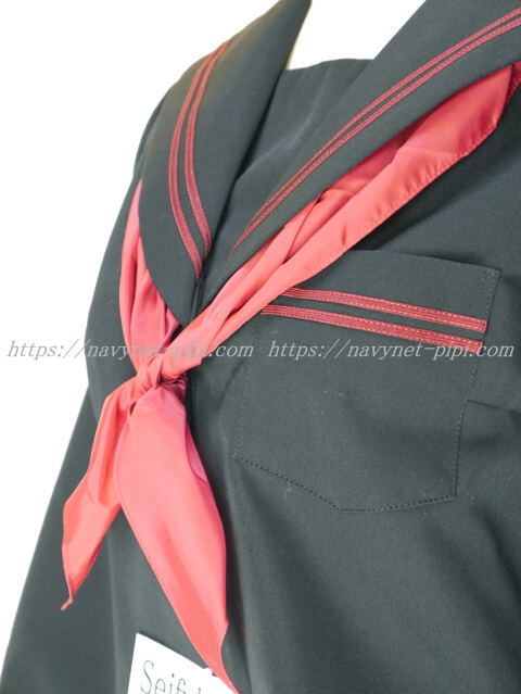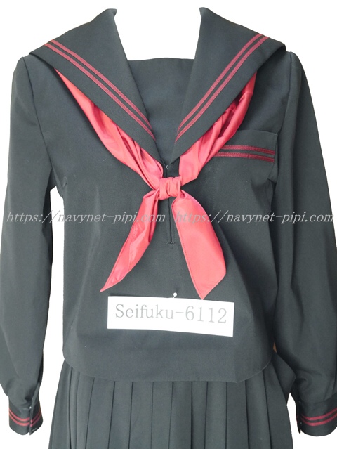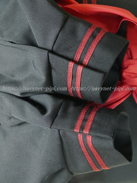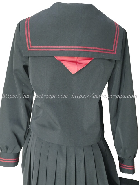 上着は黒でセーラー襟と胸ポケットと両袖口にエンジ色ライン2本入り☆