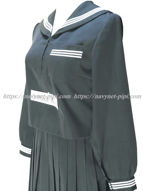 | 詳細/特徴 冬服2点セット (上着・スカート) ☆黒いセーラー服☆ 黒色のセーラー服上下セット♪ 上着は黒でセーラー襟と胸ポケットと両袖口に白線3本入り☆ 左脇下ファスナー☆ スカートも黒で28本車ヒダ仕様のプリーツスカート♪ 左ファスナー&ポケット☆ ウエスト調整はアジャスタータイプ☆ ♪珍しい黒いセーラー服♪ |