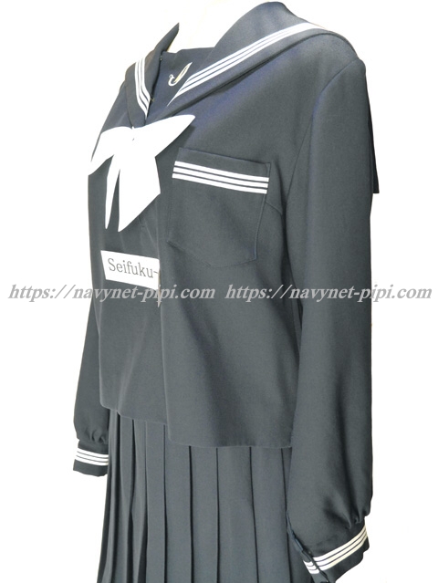 | 詳細/特徴 冬服3点セット (上着・スカート・専用リボン) ☆新品の専用リボン付き☆ 【専用リボンは新品で白色のポリエステル100%のハネクトーンです】 濃紺のセーラー服セット♪ セーラー襟と胸当てと胸ポケットと両袖口に白線3本入り☆ 人気の胸当てには校章刺繍入り☆ 左脇下ファスナー☆ スカートは濃紺で28本車ヒダ仕様のプリーツスカート☆ 左ファスナー&ポケット☆ ウエスト調整はアジャスタータイプ♪ |
