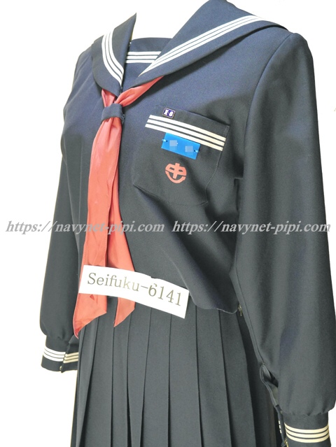 | 詳細/特徴 冬服5点セット (上着・スカート・指定スカーフ・学年章バッチ・プラスチック名札) ☆豪華セット☆ 【スカーフはお古でエンジ色の帯タイプで素材はポリエステルのアミックです】 濃紺のセーラー服セット♪ 白線3本ラインのセーラー服・左脇下ファスナー☆ 胸当てにも白線入り・胸ポケットに校章プリント・スカーフ留め付き♪ スカートは濃紺で24本車ヒダ仕様のプリーツスカート♪ 左ファスナー&ポケット☆ ウエスト調整はアジャスタータイプ☆ ♪希少なプラスチック名札と学年章バッチ付きセット♪ 上着もスカートも内側にネーム刺繍入り♪ |