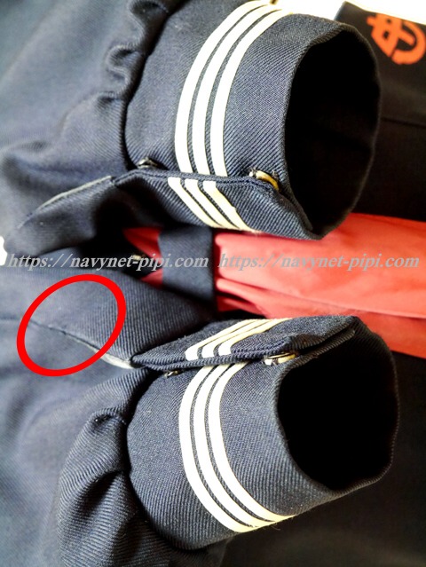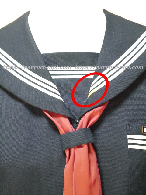 | 品質と状態 3年間の使用済み制服なので自然な使用感の傷みは若干あります♪丁寧に大切に着ていた様子で目立った擦り切れ傷みやシミ汚れはありません。厳しく言っちゃうと左袖口の上にお写真でもわからない程度の擦れ傷みととセーラー襟の前左胸元にお写真のようなシミ汚れがあります。スカートは綺麗な状態♪ |