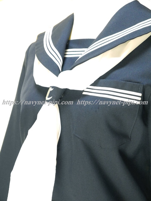 | 詳細/特徴 冬服3点セット (上着・スカート・指定スカーフ) ☆人気制服☆ 【スカーフは新品で白色の三角タイプで素材はナイロンのハネクトーンです】 人気の濃紺タイプのセーラー服セット♪ セーラー襟に白線3本入り・胸当てと胸ポケットに白線3本♪ スカーフ留めに校章刺繍入り☆ 左脇下ファスナー・ネーム刺繍入り☆ スカートは濃紺の24本車ヒダ仕様のプリーツスカート♪ 左ポケット&ファスナー☆ ウエスト調整はアジャスタータイプ☆ ネーム刺繍入り☆ 上着もスカートも内側にネーム刺繍入り♪ |
