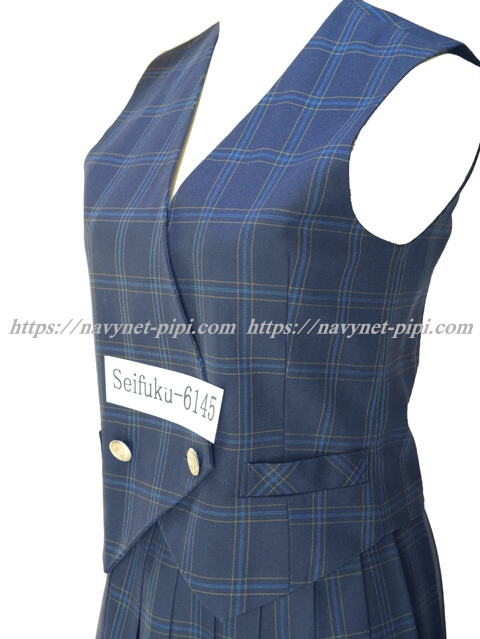 | 詳細/特徴 ベスト&スカート (冬服ベスト・冬スカート) ☆チェック柄☆ 青紺のベストは合わせ2個ボタン留め☆ 両腰部分に切りポケット☆ 青紺のチェック柄24本車ヒダプリーツスカート☆ ウエスト調整はアジャスタータイプ☆ |