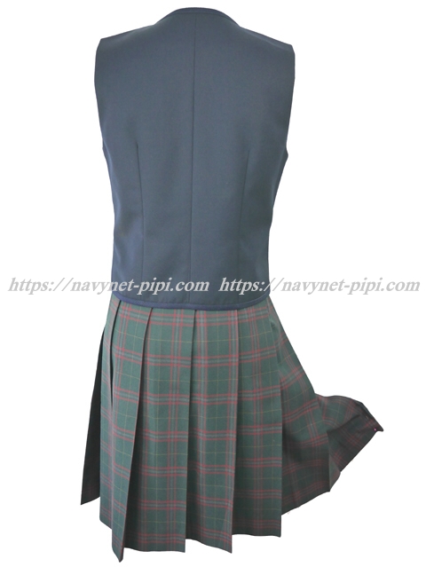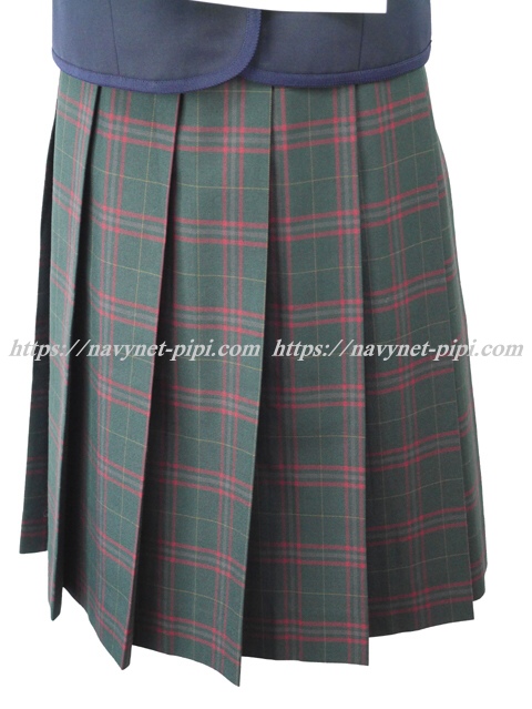 スカートはグリーンと赤のチェック柄で12本車ヒダプリーツスカート♪
