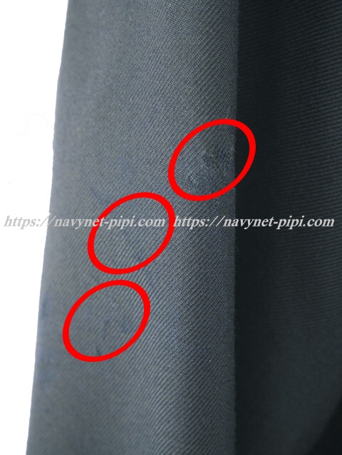 3年間の使用済み制服なので自然な使用感の傷みは若干あります♪丁寧に大切に着ていた様子ですがお写真のように左袖に生地の傷みがある状態なのとスカートの所々に微妙に毛羽立ち感があるかなぁーって感じの品質で両袖口にも若干皮脂汚れある状態です☆ |