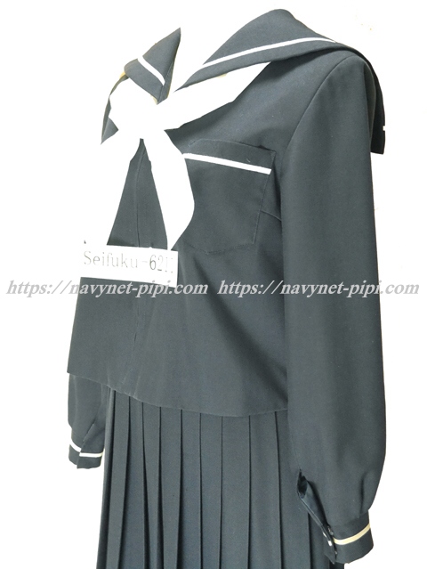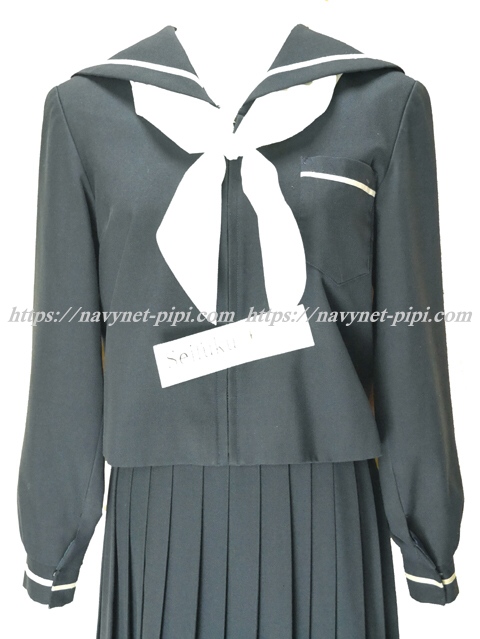 上着は濃紺でセーラー襟と胸ポケットと両袖口に白線1本♪