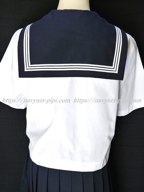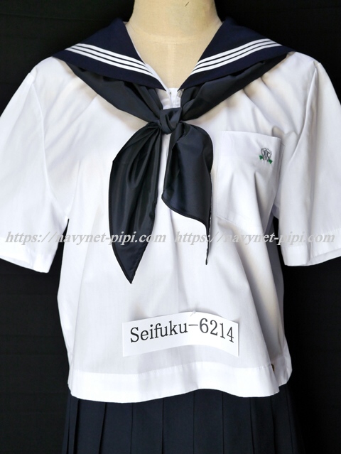 | 詳細/特徴 夏服3点セット (上着・スカート・指定スカーフ) ☆半袖セーラー☆ 【スカーフは新品で黒三角、素材はナイロン100%でハネクトーンです】 半袖の夏セーラー服セット♪ 上着は左脇下ファスナー・胸ポケットに校章刺繍入り☆ スカートは濃紺で28本車ヒダプリーツスカート♪ 左ファスナー&ポケット☆ ウエスト調整はアジャスタータイプ♪ 上着とスカートに校章バッチ(縫い付け)付き☆ |