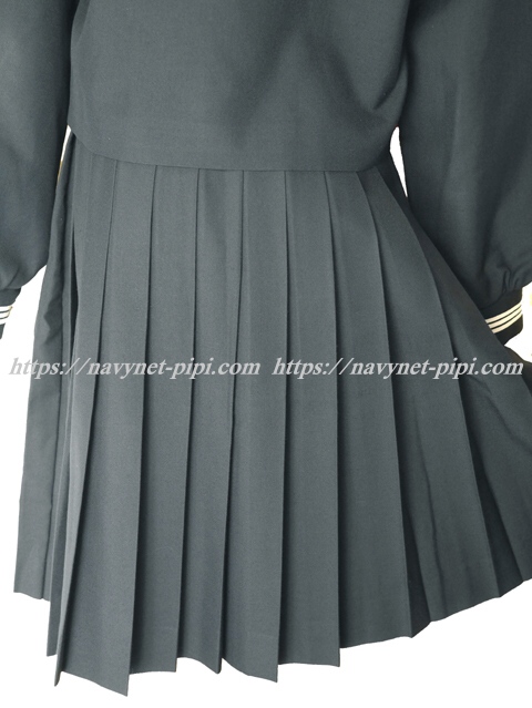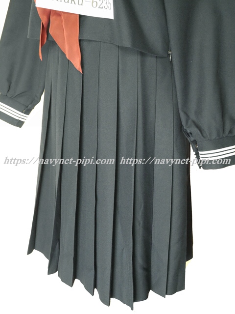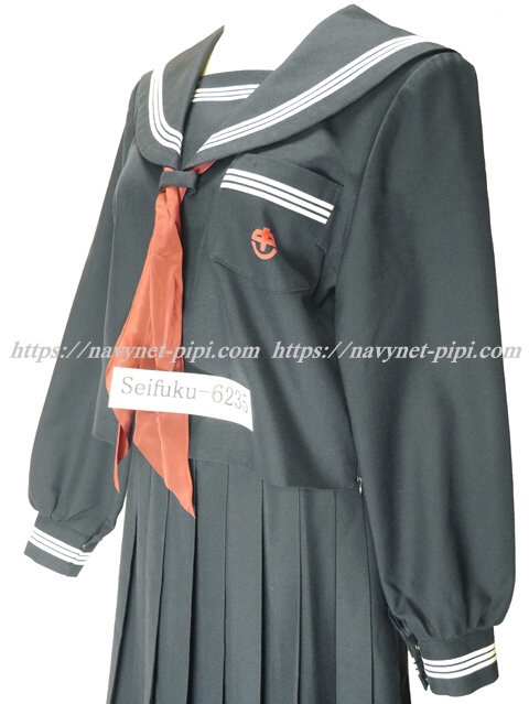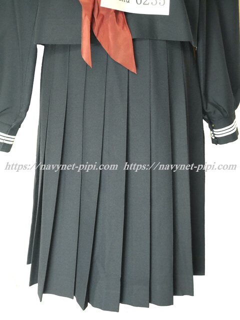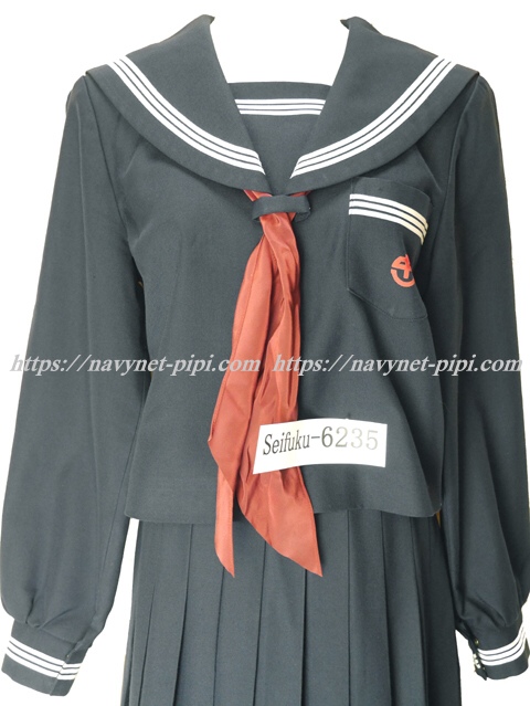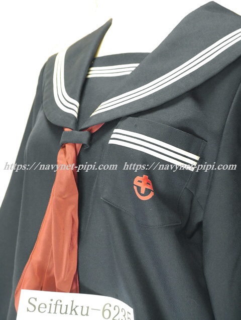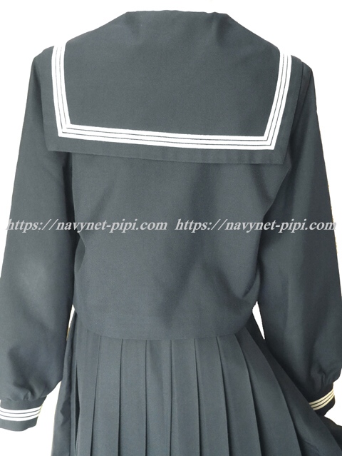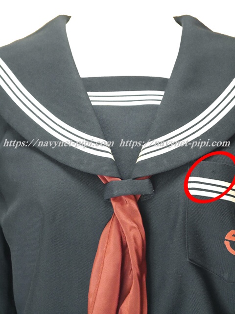 | 詳細/特徴 冬服3点セット (上着・スカート・指定スカーフ) ☆大きめサイズ☆ 【スカーフはお古でエンジ色の帯タイプで素材はポリエステルのデシンです】 濃紺のセーラー服セット♪ 白線3本ラインのセーラー服・左脇下ファスナー☆ 胸当てにも白線入り・胸ポケットに校章プリント・スカーフ留め付き♪ スカートは濃紺で24本車ヒダ仕様のプリーツスカート♪ 左ファスナー&ポケット☆ ウエスト調整はアジャスタータイプ☆ |