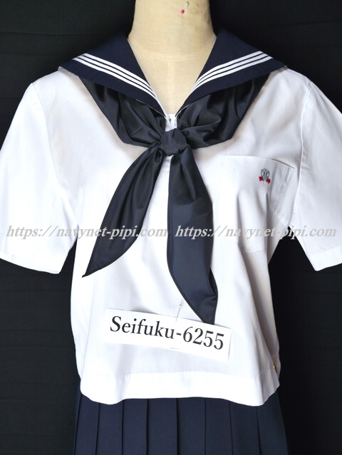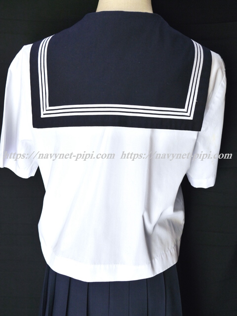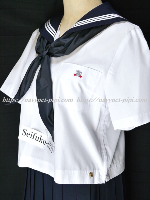 | 詳細/特徴 夏服3点セット (上着・スカート・指定スカーフ) ☆半袖セーラー☆ 【スカーフは新品で黒三角、素材はナイロン100%でハネクトーンです】 半袖の夏セーラー服セット♪ 上着は左脇下ファスナー・胸ポケットに校章刺繍入り☆ スカートは濃紺で24本車ヒダプリーツスカート♪ 左ファスナー&ポケット☆ ウエスト調整はアジャスタータイプ♪ 上着とスカートに校章バッチ(縫い付け)付き☆ |