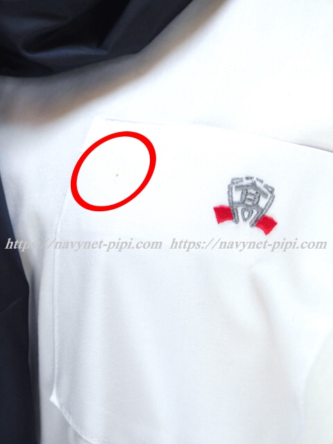 | 品質と状態 3年間の使用済み制服なので自然な使用感の傷みはあります♪丁寧に大切に着ていた様子で大きく目立つ傷みやシミ汚れは無い状態なのですが上着の胸ポケットと左脇下ファスナー横にお写真のような小さなシミ汚れとスカートの前に小さなシミ汚れ1箇所ある状態の品質です♪ |