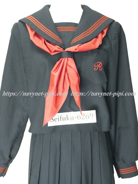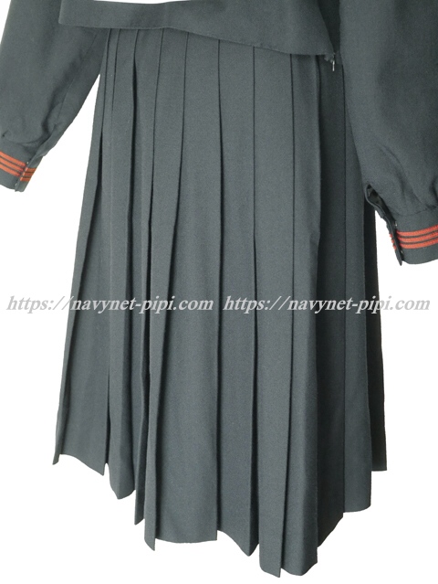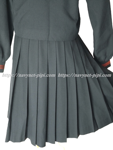 | 詳細/特徴 冬服3点セット (上着・スカート・指定スカーフ) ☆人気制服☆ 【スカーフは新品でえんじ色の三角タイプで素材はナイロンでハネクトーンです】 上着は濃紺でセーラー襟にエンジ色の3本ラインが特徴的☆ 胸ポケットと胸当てにもエンジンの3本ライン♪ 胸ポケットにエンジ色で大きく校章刺繍入なのもポイント☆ 上着は左脇下ファスナー・ネーム刺繍入り♪ スカートは濃紺で24本車ヒダプリーツスカート♪ 左ファスナー&ポケット☆ ウエスト調整はアジャスタータイプ☆ |