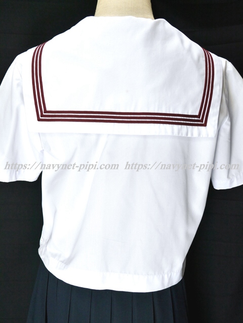 | 詳細/特徴 夏服3点セット (上着・スカート・指定スカーフ) ☆可愛い夏セーラー☆ 【スカーフは新品でえんじ色の三角タイプで素材はナイロンでハネクトーンです】 エンジ色のセーラーラインが印象的で可愛いです☆ 上着は左脇下ファスナー・上着の内側にネーム刺繍入り♪ 胸ポケットに校章入りのネーム名札付き☆ スカートは濃紺で24本車ヒダプリーツスカート♪ 左ファスナー&ポケット☆ ウエスト調整はアジャスタータイプ♪ |