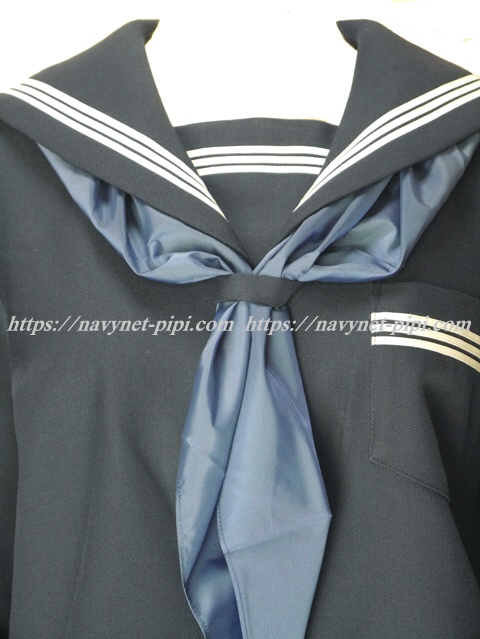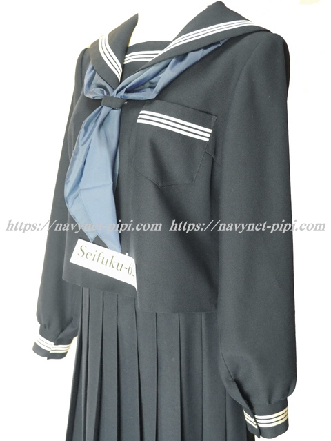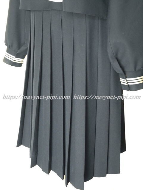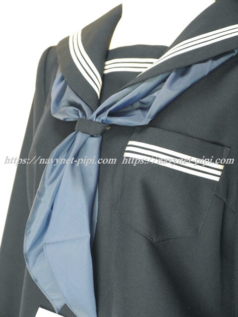 | 詳細/特徴 冬服3点セット (上着・スカート・指定スカーフ) ☆人気の胸当て付き☆ 【スカーフは新品の三角スカーフで素材はナイロン100%のハネクトーンです】 濃紺のセーラー服上下セット♪ 上着は濃紺でセーラー襟と胸ポケットと胸当てと両袖口に白線3本入り☆ スカーフ留め付き・左脇下ファスナー☆ ネーム刺繍入り ☆人気の胸当て付きセーラー服☆ スカートも濃紺で24本車ヒダ仕様のプリーツスカート♪ 左ファスナー&ポケット☆ ウエスト調整はアジャスタータイプ☆ |