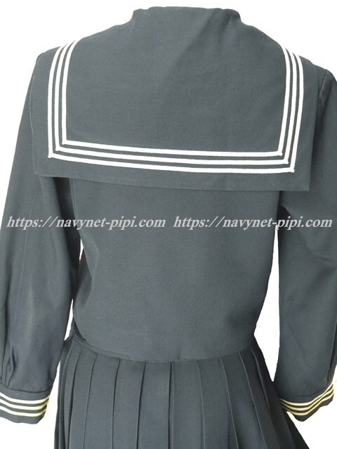 | 詳細/特徴 冬服2点セット (上着・スカート) ☆希少品☆ 白線黄ばみ 難あり 上着は濃紺でセーラー襟両袖口に白線3本入り♪ スカーフ留め部分に白で校章刺繍入り☆ スカートは濃紺で24本箱ヒダプリーツスカートで ウエストベルトにアンダーシャツ用のボタン穴があります☆ 左ファスナー&右ポケット☆ |