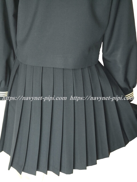| 詳細/特徴 冬服3点セット (上着・スカート・お古の指定リボン) ☆濃紺セーラー☆ 人気の濃紺タイプのセーラー服セット♪ 上着はのセーラー襟と胸当て胸ポケット両袖口に白線3本☆ 左脇下ファスナー・ネーム刺繍♪ スカートは28本車ヒダ仕様のプリーツスカート♪ 左ファスナー&ポケット☆ ウエスト調整はアジャスタータイプ♪ ネーム刺繍入り(先輩からのお下がり品) ※こちらのスカートは28本車ヒダ仕様になります。 |