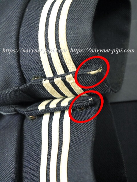 | 品質と状態 3年間の使用済み制服なので自然な使用感の傷みは若干あります。大切に丁寧に着ていた様子ですがお写真のように上着の両袖口上部分と左袖口と角の擦れ傷みと白線の黒ずみ、セーラー襟の左側に小さな赤ペンのシミ汚れある状態の品質です♪ |