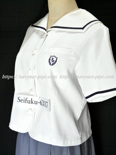 | 詳細/特徴 夏服上下2点セット (上着・スカート) ☆現行制服☆ ブラウスはセーラー襟に紺の1本ライン入☆ 胸ポケットに校章刺繍☆ スカートは薄いパープルグレーで16本車ヒダプリーツスカート☆ 裾のカラーラインが特徴の可愛いスカートです♪ ウエスト調整はアジャスタータイプ☆ 左ファスナー&ポケット☆ |