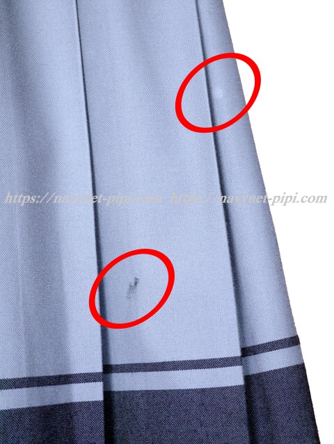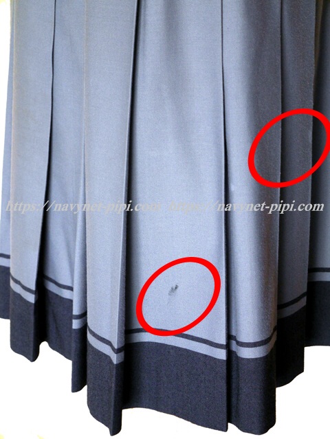 | 品質と状態 3年間の使用済み制服なので自然な使用感の傷みは若干あります♪丁寧に着ていた様子ですがお写真のように上着の左襟にシミ汚れとスカートの2本目と16本目のプリーツにシミ汚れがあります☆ |