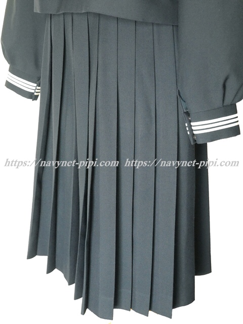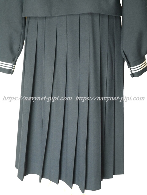 | 詳細/特徴 冬服3点セット (上着・スカート・指定スカーフ) ☆濃紺セーラー☆ 【スカーフは新品で白の三角スカーフで素材はナイロンでハネクトーンです】 濃紺の冬セーラー服上下セット☆ セーラー襟と胸ポケットと両袖口に白線3本☆ スカーフ留めに赤で校章刺繍入り♪ 左脇下ファスナー♪ スカートは28本車ヒダ仕様のプリーツスカート♪ 左ファスナー&ポケット☆ ウエスト調整はアジャスタータイプ♪ |