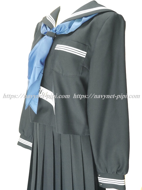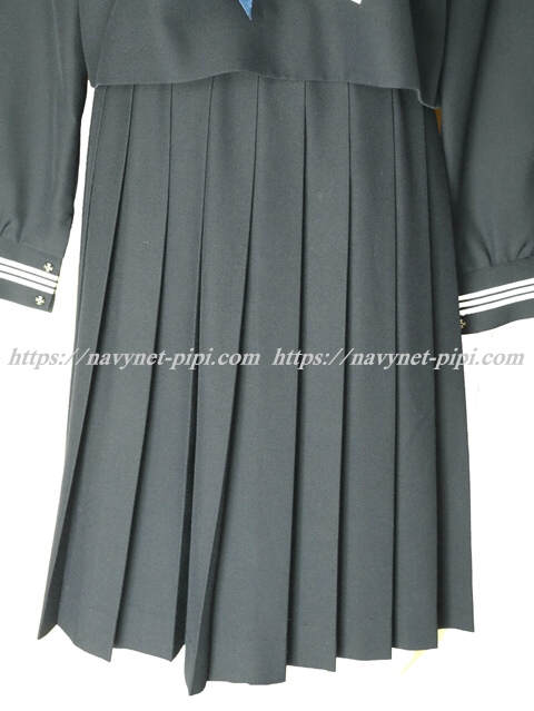 | 詳細/特徴 冬服3点セット (上着・スカート・指定スカーフ) ☆濃紺セーラー☆ 【スカーフは新品の三角スカーフで素材はナイロン100%のハネクトーンです】 濃紺のセーラー服上下セット♪ 上着は濃紺でセーラー襟と胸ポケットと両袖口に白線3本入り☆ スカーフ留め付き・左脇下ファスナー☆ ネーム刺繍入り スカートも濃紺で24本車ヒダ仕様のプリーツスカート♪ 左ファスナー&ポケット☆ ウエスト調整はアジャスタータイプ☆ |