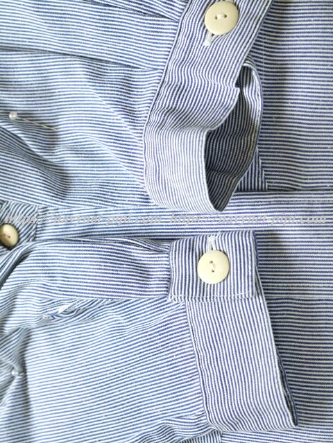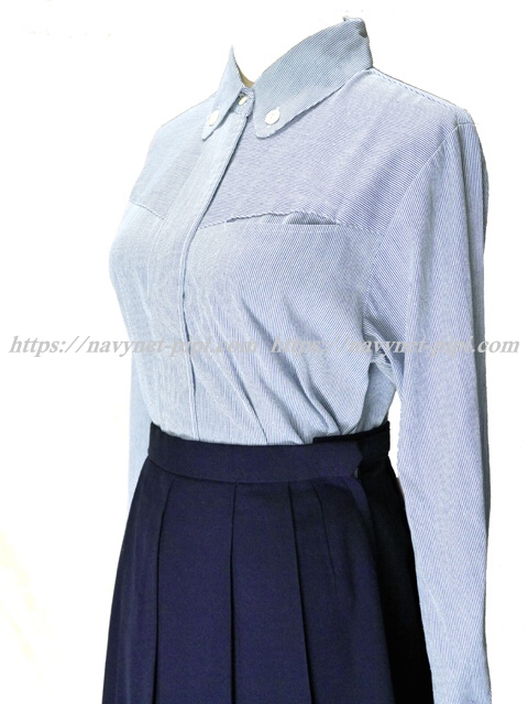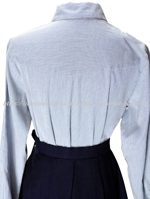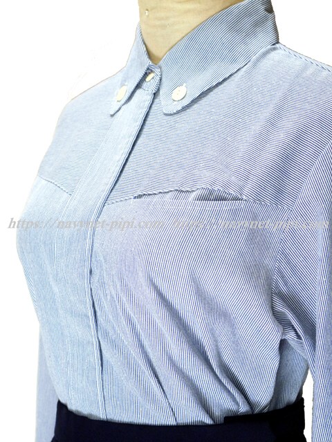 ブラウスはブルーのストライプタイプの長袖☆